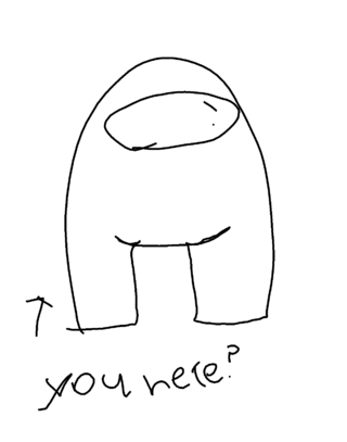 First person go comment is being drawn as a among us character