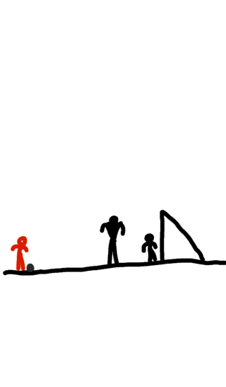 Brown kicks red little kid