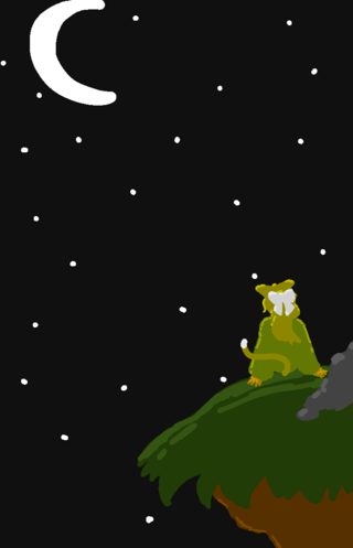 Tammy Donuts sitting on a cliff Looking at Stars