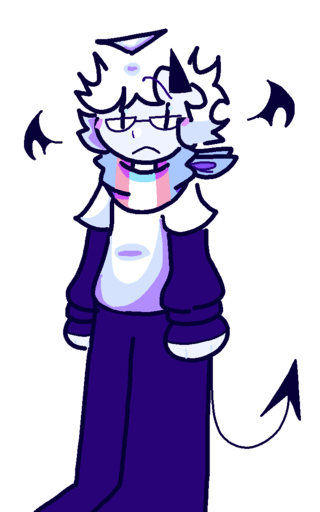 Hypno:(The character I mainly draw, Has a 'fluffy' headshape and two orange/blue eyes, usually chaotic and acts stupid, Hypisis's OLDER brother!)He/They/It