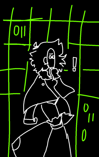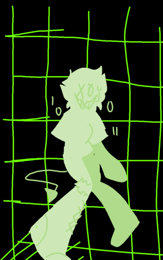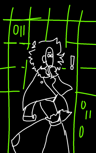Shes trying to figure if she wants to join Pyro in the glitched code of deletion of sorts or smth...