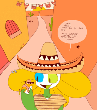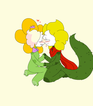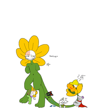 Idk if a humanoid flower and a small orange and white puppy fit in as good as Samuel was thinking...