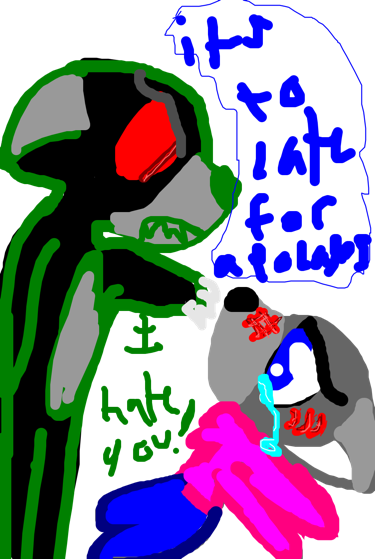 Mint: UGH CRY BABY ! * walks away * /cupcake: * looks down and whispers * I-I'm so sorry mint for...