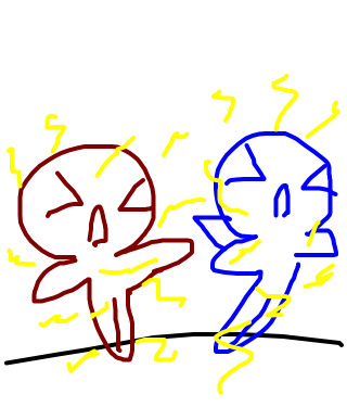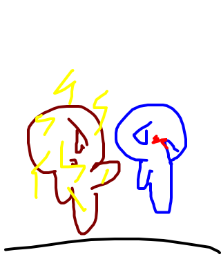 OOOWWWW!(shark boy jumps up and kicks evil lava girl)YOU!!