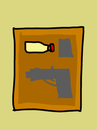 He found a bottle of almond water, a gun and ammo.
