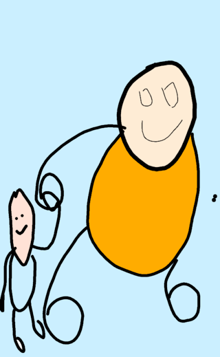Stick man with child