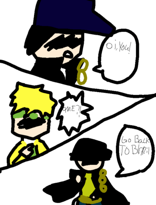 she is holding a knife while wearing a Teletubbies suit ;-;
