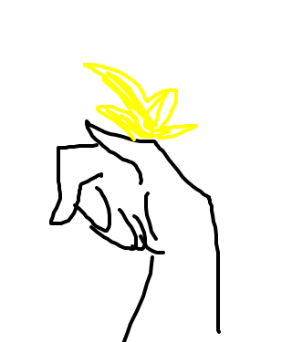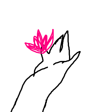 Holds a flower on the plam of her hand.