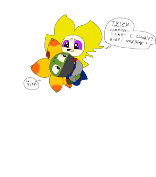 Flowey and Thron r just hugging Tyler’s face- lel. And Santiago is- just randomly touching his pe...