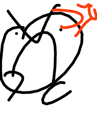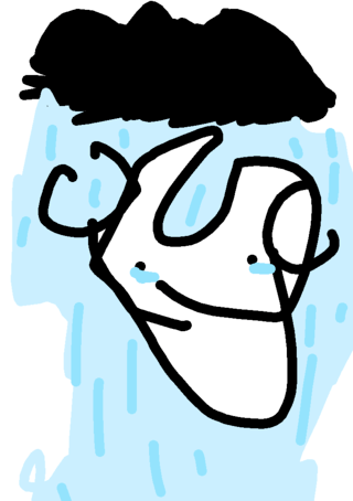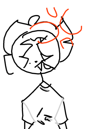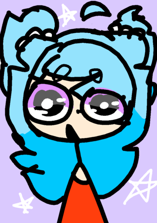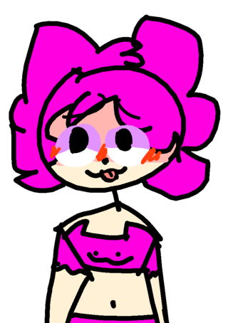 My hair is normal but behind there's an pink ball with blue veins like an brain them someone from...