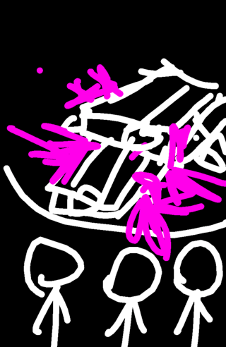 Pink is placed in a room that looks like an orchestra. Soikes go through pinks hands, and he is f...