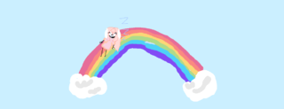 not straberry bunny being a slob and sleeping on the rainbow