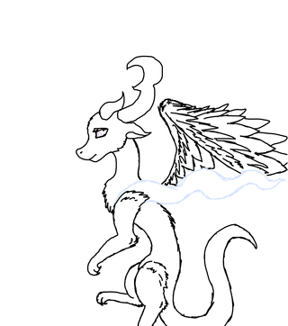 I forgot the crescent moon on the tail tip and the rhombus on the crescent moon horn on head, but...