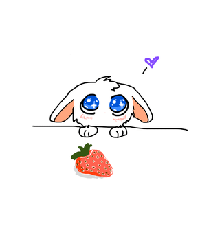 This is a cute little bunny that wants to eat a strawberry🫶