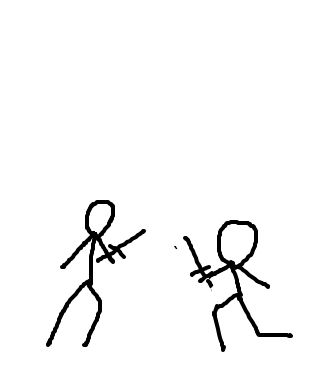Two guys fighting each other with swords. I will continue this one.