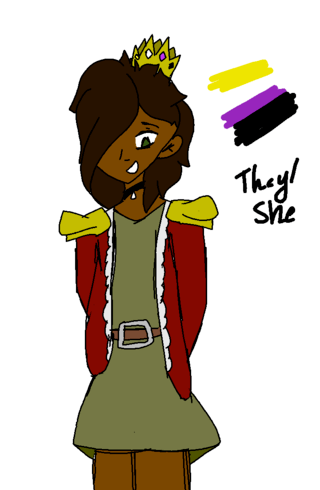 If you cant read my messy tired handwriting they're pronouns are They/She :)