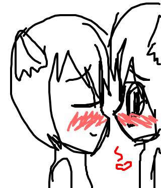 Guess kiss on the cheek will do! This is YuuXYoshiyuki! Its from an rp! Yuu's the neko boy yoshiyuki is the other guy! I played yoshiyuki and the other person played yuu! And this actually happened in the rp!>.< the rp made me fangirl so freaking much! We