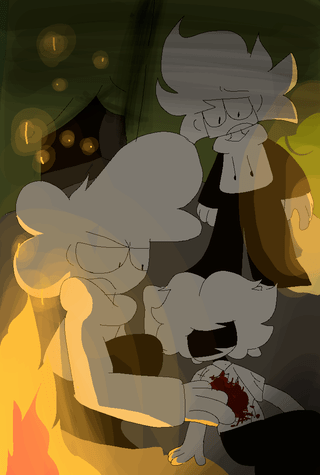 After Toby and Past Toby finished talking, they went to play inside the camp, Toby lit the fire s...