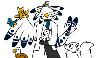 A snow owl, a forest owl, a winter fox, an eagle, a pigeon, and a polar bear!