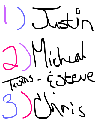My friends list in rl justin looks like zayn from 1d but tanner,Michael and Steve twins and greek,chris Japanese :3