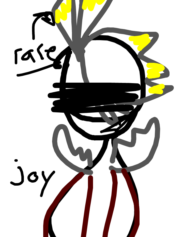 Grey: normal Red: mad Blue: upset Green: disgust Yellow: (rare but possible) joy