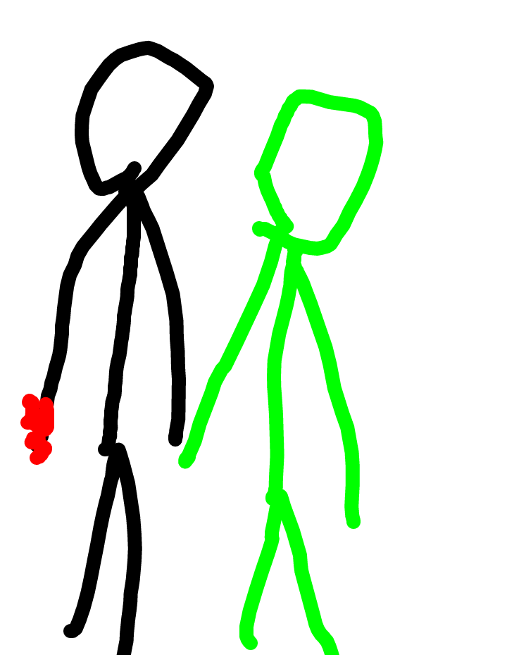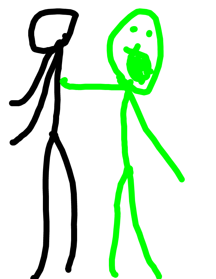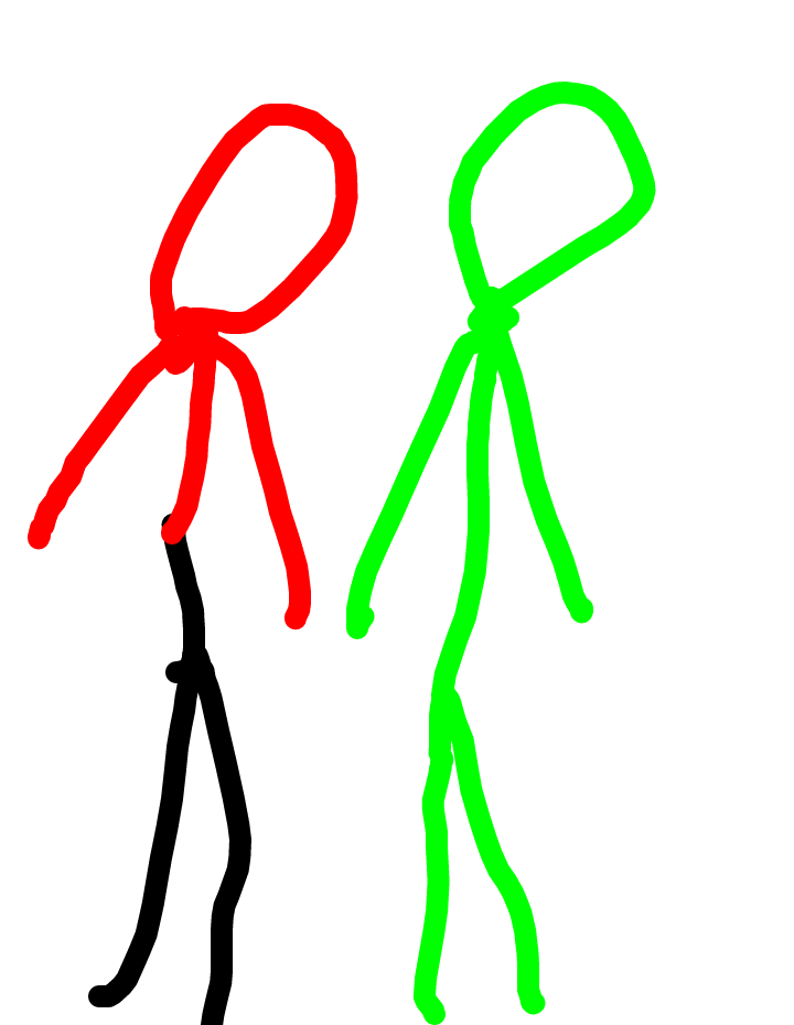 The black guy fights the green guy and then there's a big twist in the black guy turns red and punches the green guy very far and green dead!