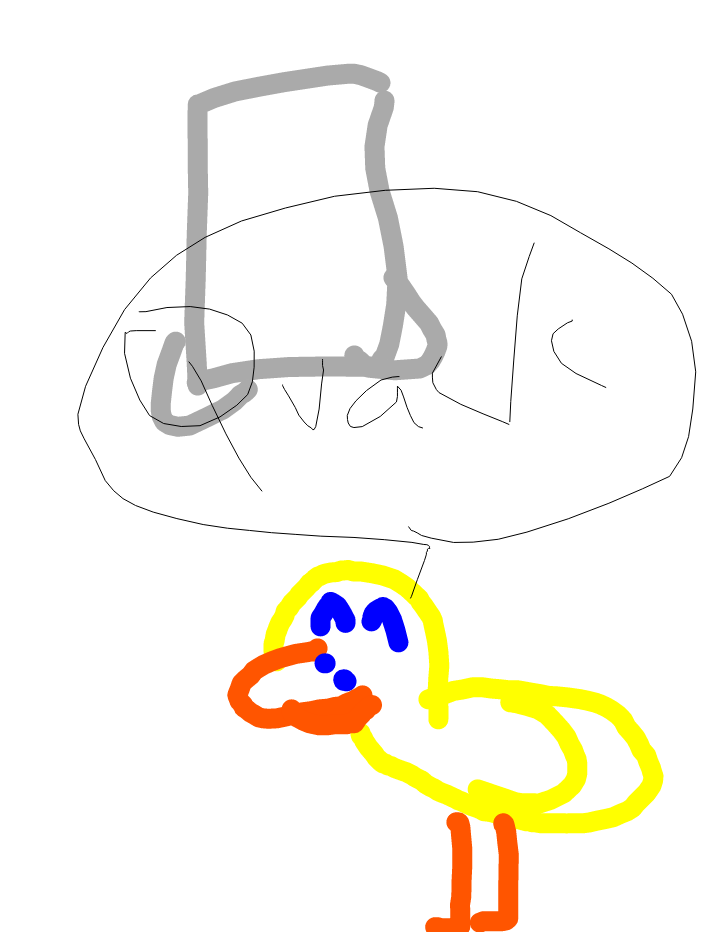 my oc named ducket the duck with a bucket on the head