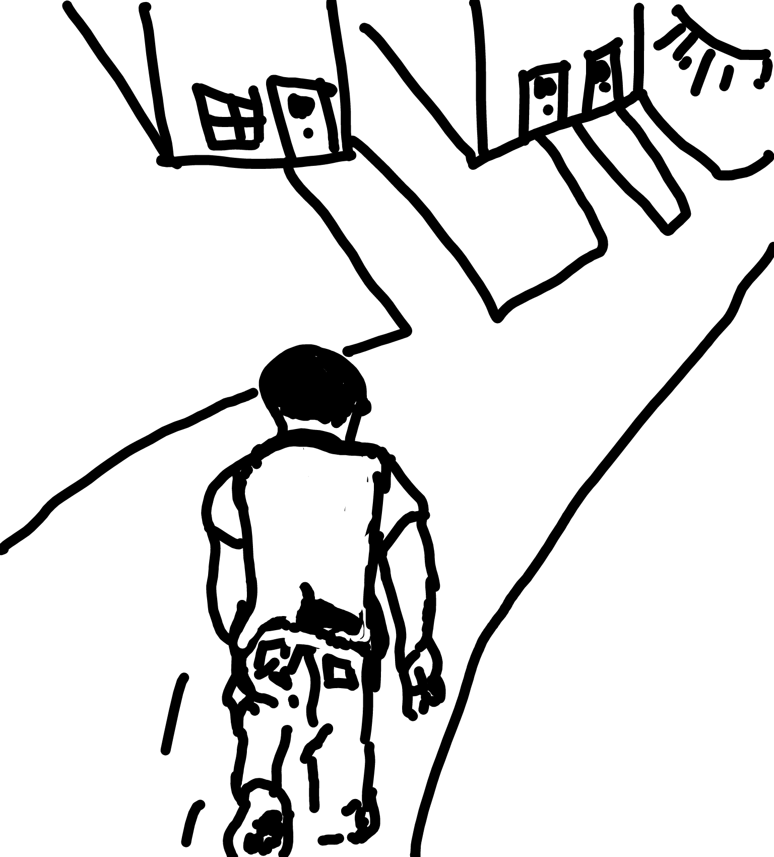 Guy standing on corner and sees someone and runs after them