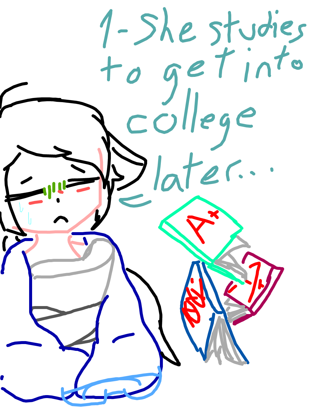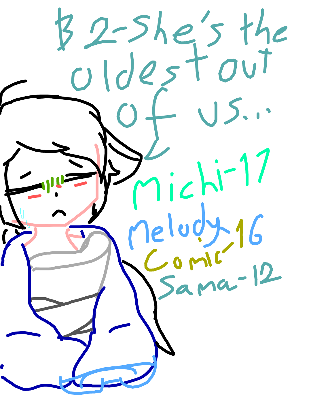 Sama:1-She studies to get into college later... *coughs* 2-She's the oldest out of us... *coughs*