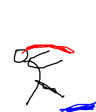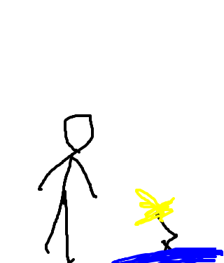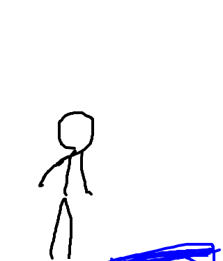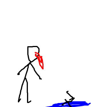 Some stick figure just apparently stood next to a puddle, then he gets a bullet pinned to his head. To be honest I have no idea how the guy got in the puddle and stayed there.