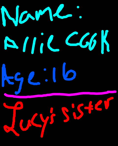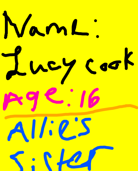 Sorry for my horrible handwriting. If you have any questions please feel free to ask me anything. I have a new oc named Sadie, if you have any suggestions please let me know. I take suggestions.