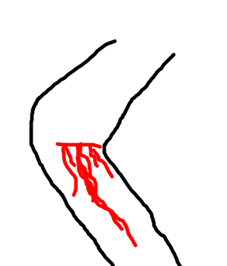 Um I wus pushing an air matress and under it wuz a match box car. My leg hit it it sliced my leg. My leg gushed blood and worst of all...paroxide:(