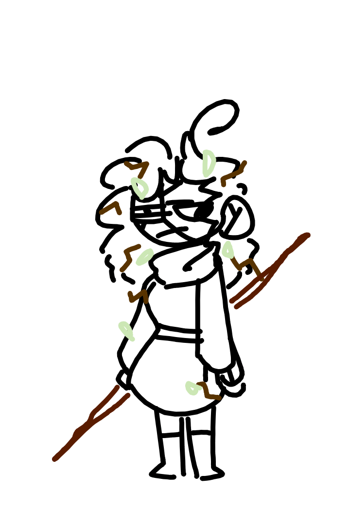 she has a stick and she plays outside a lot so she has twigs and leaves in her hair