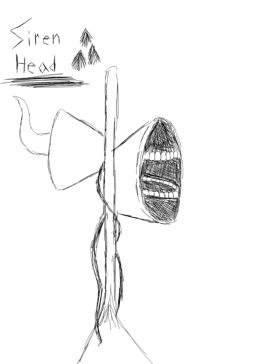 I'm drawing a detailed drawing on paper of siren head -w-