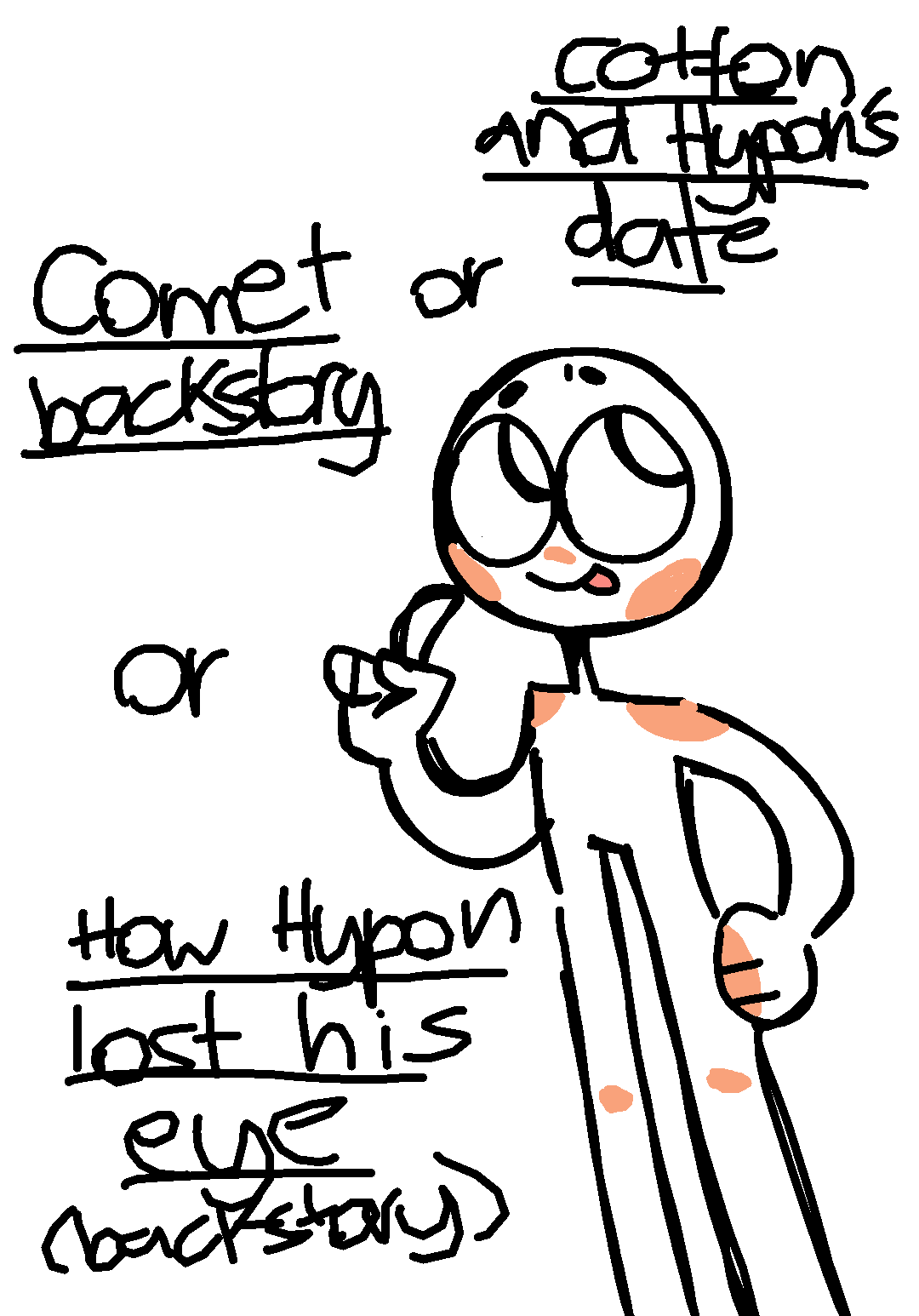 Yeah okay just choose one topic than I'll make a comic for the one that gets the most votes (I'm not doing animatics anymore since those took a rlly long time to upload so yeah)