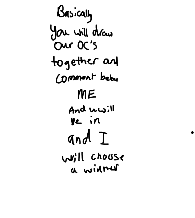 Oops forgot description! You have to draw our characters together mine and ur oc!