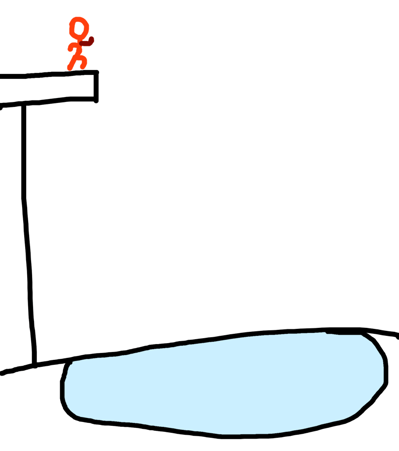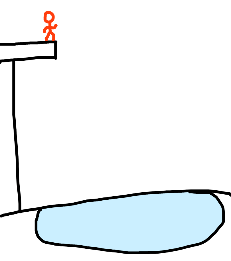 Red stick man jumping in a pool