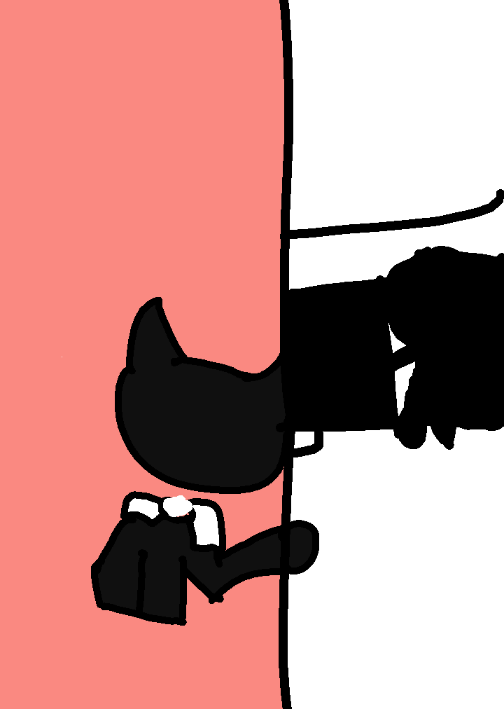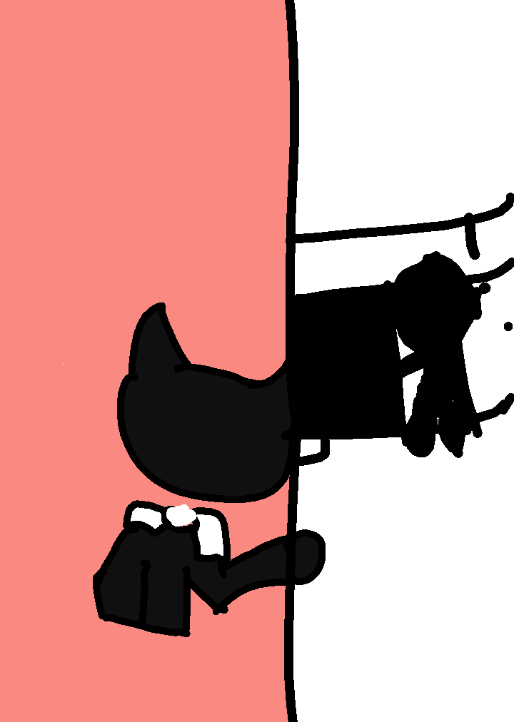 bendy: *checking kicthen* Someone: !!!!! Someone: *runs away* Bendy: ummm huh?