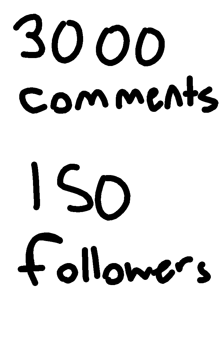 And 150 followers and 3000 commented posts Is what I got HOLY SHIIIIIIIT OH MY GOOOOOOOOD -freaks out- WHY DO I HAVE THIS MAAAAANNNNYYY!?!?!