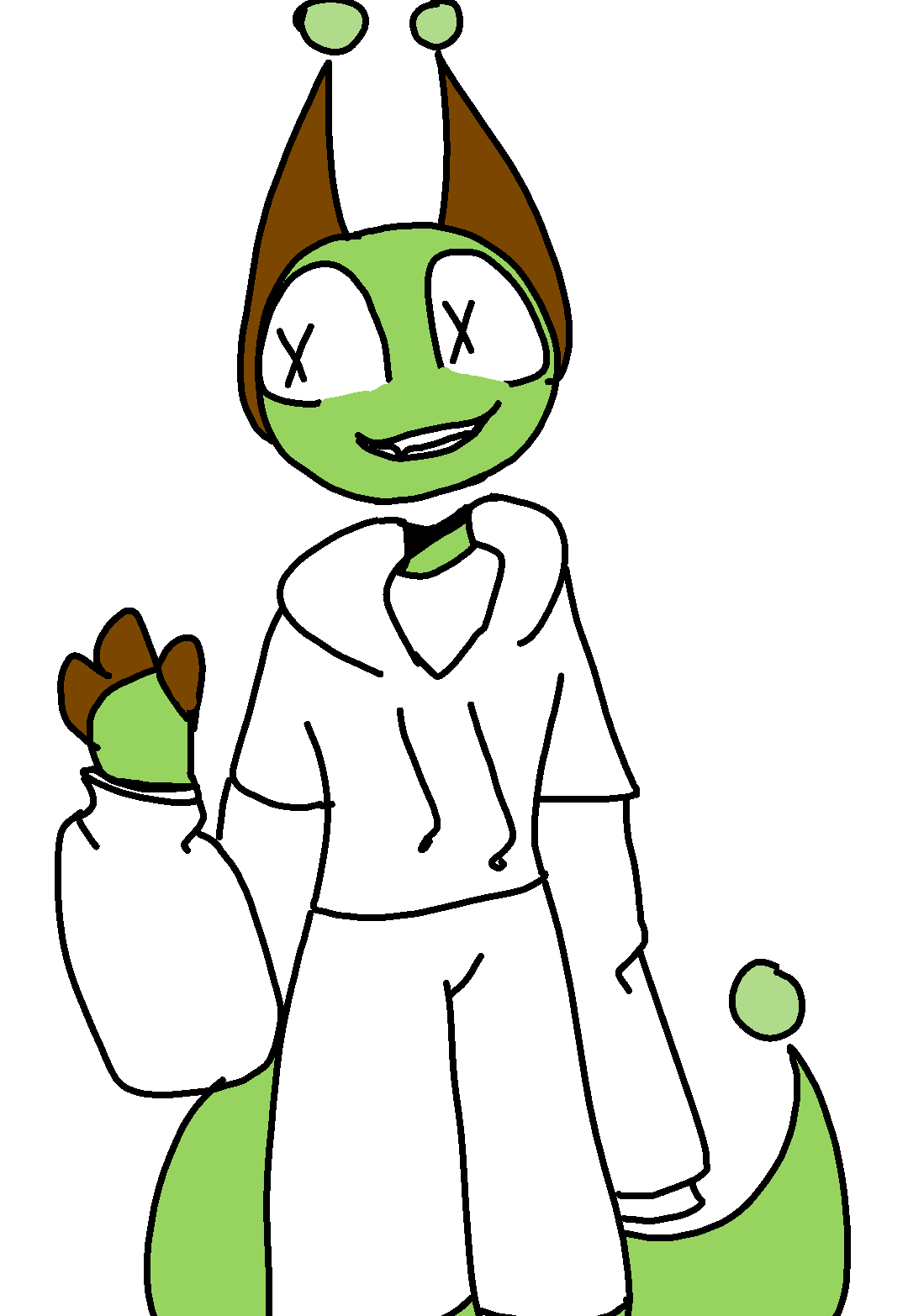 The lightest green you can get for his jacket, and for the pants, dark blue