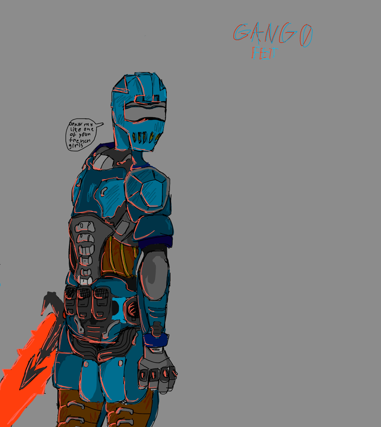 I drew hazzer as a doom slayer with one of those swords I’ve never played doom but I’ve seen my brother play it. I also drew him like he’s relaxed and not standing strait HOPE YOU LIKE IT HAZZER!