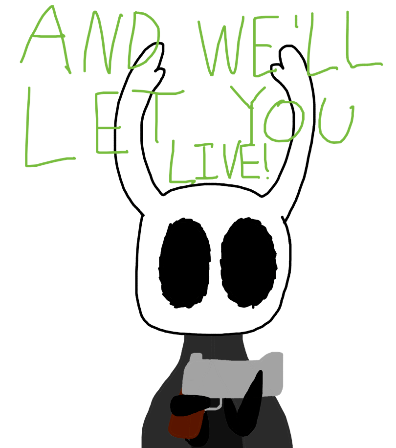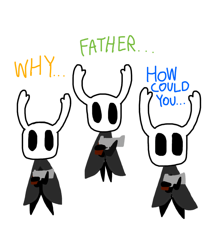 I find a couple people playing as the same character (Knight) and have the same name, and I decided to join them. I told LD and Kenu to join me, and they did. One of the knights left, and the other decided to change to the Pale King (Knight’s father). Since the pale king had a bunch of children, and threw them away (hollow Knight spoiler) we decided to start rping and attacked him, saying stuff like “how could you,” and “why did you throw us away?” And the guys started saying “children, wait!” Then he started running. We chased after the guy, and eventually we cornered him. We kept sending death threats (rping still, don’t worry-) then the guy said, “anything but killing!” (Another spoiler, the Pale King is already dead), then LD said “Give us nuggies, and maybe we’ll let you live.” So he does that, but then he said they were peanuts (fun fact, I’m seriously allergic to those-) and so we tried to kill him again (still rp, duh lol). Eventually LD caught him and he died. White lady then came in (same guy but he changed cuz Pale King died [again haha]). And then we started yelling at the white lady telling “her” what the king did to them (ANOTHER spoiler, White Lady is their mother, or Pale King’s wife).