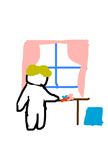 The girl sees how to make a toy heart and makes one..... ;)