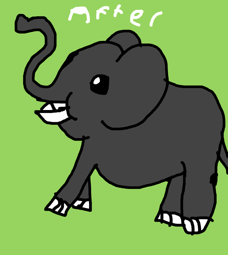 Elephant drawing before and after