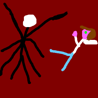 The rakes try's to attack the hooded kid and slender man fights the rake