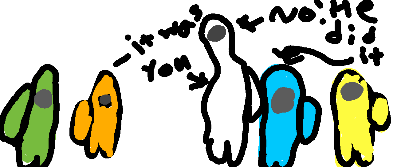just so you know white is strange mutant man and i'm cyan when you are the inposter but they all find out