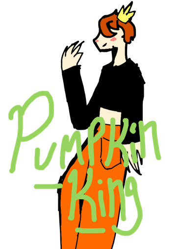 Harõ: ling sleced crop-top with orange pants and a crown- Hero Name- Pumpkin King