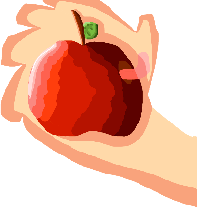 Worm coming out of an apple.