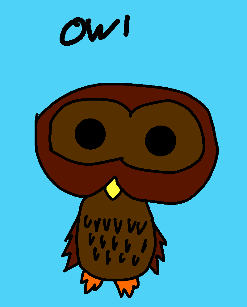 I drew an owl, rake and leaves and I forgot which colors 👁👄👁