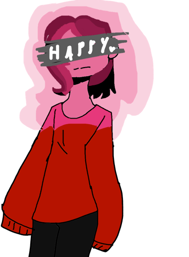 To me happy is: Warm sweaters in the cold, i like drawing short hair like that..it makes me happy so i did it! And why do ppl draw happy as like yellow? I like pink(the pink i drew was supposed to look like glowing bc i like sometimes set my LED lights on pink and they goow^^)blue, yellow and other colors but also when i’m happy im not ALWAYS smiling so why does happyness-human drawins smiling a lot..? Idk